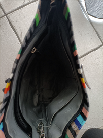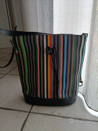 Borsa Brandina, nera a righe colorate, con cerniera, a spalla, ottime condizioni