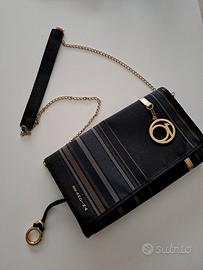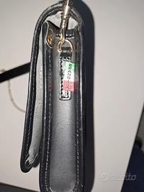 Borsa Brandina, chiusura a bottone, taschina interna con cerniera, tracolla fatta a catena con parte in pelle per appoggio sulla spalla