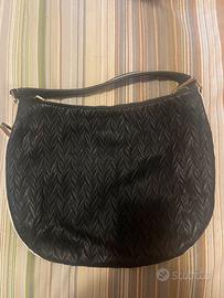 Borsa nera in pelle lavorata con cerniera per ampliarla Usata poco