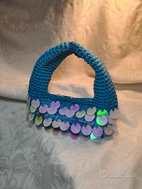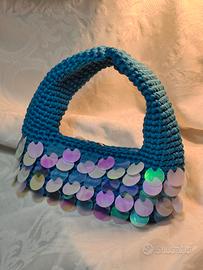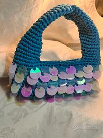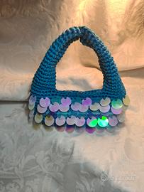 Borsa realizzata al uncinetto artigianale fatta a mano ✨ Originale elegante e realizzata con materiali di alta qualità . La borsa e di un colore turchese con le paillettes si può utilizzare tranquillamente come monopala, e molto capiente per telefono portafoglio, chiavi fazzoletti etc..