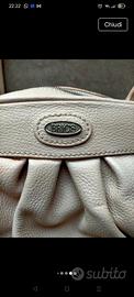 pelle beige, usata pochissimo, piedini metallo, 45x15 h30 altezza con manici 60 cm, 2 scomparti