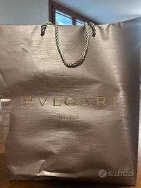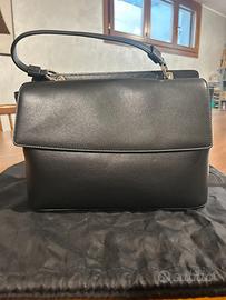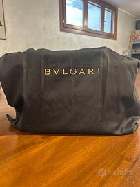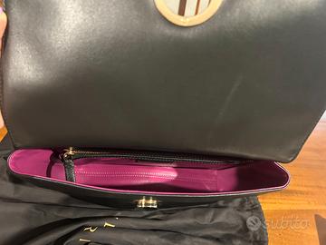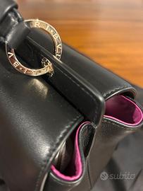 Borsa Bulgari in pelle nera, interno in pelle fucsia larg. cm. 31, p. cm. 12, h. cm. 21