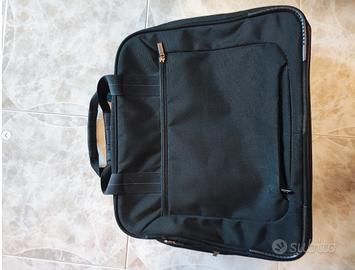 Borsa in tela semirigida nera, stile viaggio business. Molto pratica e stilosa. 3 scoparti capienti, zip centrale per espansione, zip posteriore per trolley.