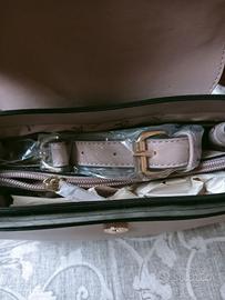 Bellissima borsa color cipria, con dettagli in pelle nera pitonata