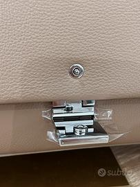 Tracolla regolabile, logo inciso, motivo a tinta unita, chiusura a fibbia.