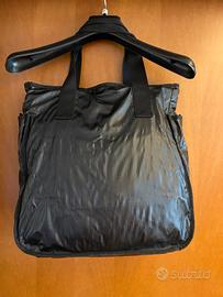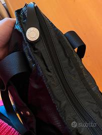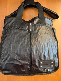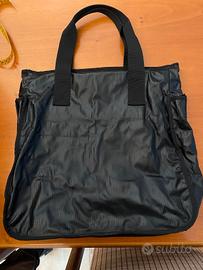 tessuto impermeabile. 3 tasche esterne con chiusura magnetica. doppia tasca interna. misure : larghezza 35 cm altezza manici esclusi 38 cm manici lunghi 17 cm profondita' 12 cm.