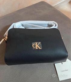 Borsa a tracolla Calvin Klein in pelle nera. - Logo CK dorato. - Tracolla regolabile. - Chiusura con zip.