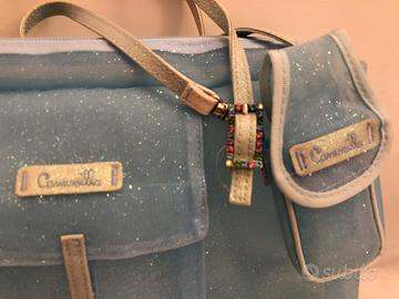 Borsa a mano Camomilla nuova colore celeste brillante con tasca anteriore e borsellino porta chiavi. Dimensioni 30x20