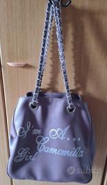 Borsa con manici a catena e scritta I'm a Camomilla Girl. - Manici a catena color argento. - Scritta I'm a Camomilla Girl in rilievo.