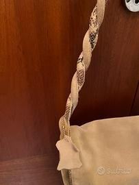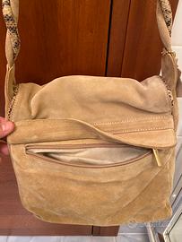 Vendo borsa in camoscio made in italy con zip e tracolla camoscio-pitone. Chiusura con zip e e fodero con calamita. Tasca esterna posteriore con zip Tasca interna con zip. Prodotto nuovo mai utilizzato