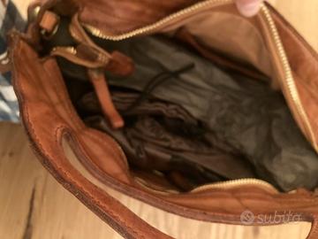Borsa Campomaggi in pelle cognac. Chiude con zip. Cinghia di spalla regolabile e removibile. Fodera di cotone in tinta unita. Nuova mai usata.