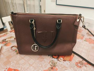 borsa capiente 40 x 30, Originale Trussardi con sacco contenitore, usata con minimi segni di usura intorno alla cerniera . pari al nuovo di un bellissimo bordeaux con finiture nere. perfetta dentro e fuori