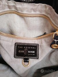 Borsa Car Shoe originale pelle scamosciata marrone,borsa a spalla, interni di tessuto, usata, presenta asola manico sfilacciata come da foto, chiusura con bottone, frange