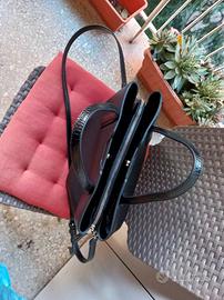 Borsa a mano NERA da donna della linea Beatrice by Carpisa, tinta unita. 3 scomparti di cui uno zippato al centro come divisorio, ha 2 manici rigidi e una tracolla removibile e regolabile in tinta. Internamente ha vari scoparti di cui vari con zip. NON DISPONIBILE LA CONFEZIONE ORIGINALE.