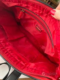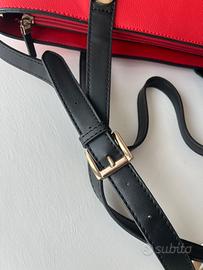 Borsa Carpisa in ecopelle rossa, manici e tracolla neri, tasca esterna e chiusura con zip. In aggiunta pochette/portafogli con anello portachiavi e comparti per carte di credito. Tutto in eccellente stato.
