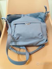 Borsa Carpisa da donna, color tortora chiaro con cerniere e borchie color oro. La borsa presenta tre tasche interne (di cui una con cerniera), e due tasche esterne; si presenta molto capiente.