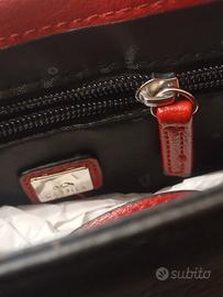 Simpatica borsa, marca Carpisa,usata solo 1 volta ad un compleanno. È in similpelle,colore rosso preminente,nero e inserti laterali beige .