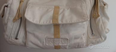 Borsa Carpisa a tracolla in tela bianca con inserti beige e varie tasche. Presenti piccolissime macchie gialle da conservazione al chiuso.