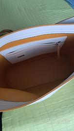 borsa bianca con finiture senape