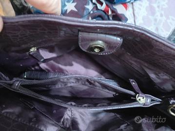 Borsa nuova, con cartellino e manici ancora imballati. Colore viola scuro, completa di tracolla. Dimensione 45x25 circa