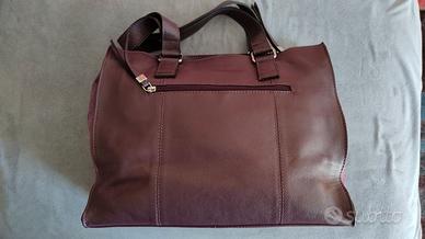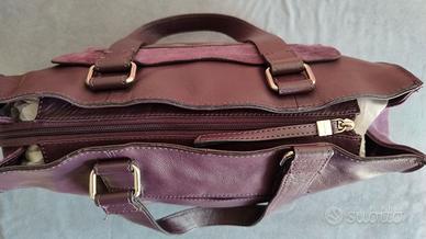 Borsa Carpisa in vera pelle con inserti scamosciati molto capiente colore viola prugna, tasca interna con cerniera e due scomparti.