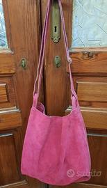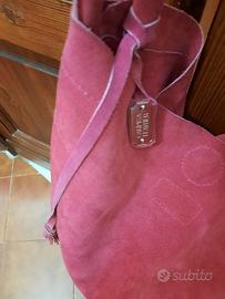 borsa morbidissima in vera pelle scamosciata, meraviglioso colore fucsia, ottimo stato misure: altezza 33 larghezza 40 profondità 12