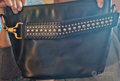 Borsa Carrie mai indossata è nera con borchie nere e oro e con la tracolla anch'essa con le borchie