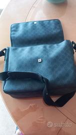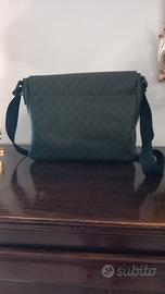 Borsa/cartella a tracolla Gucci in pelle stampata con logo Gucci. Dimensioni 35 x 30.,Colore grigio scuro e chiaro. Marca Gucci, originale. Usata., unisex.