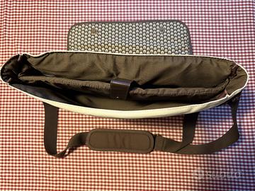 Borsa a tracolla regolabile utile come porta libri - documenti o porta PC, due scomparti, marchiata Nutella® Ferrero® nuova mai usata ancora nel cellofane. Cerniera nella parte anteriore e chiusura con due Clips, misure: 40 x 30 centimetri, profondità 8 centimetri.