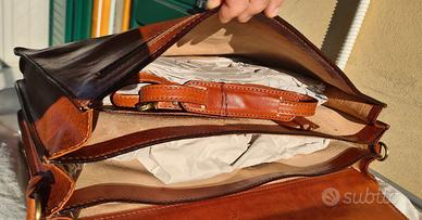 Elegante e rifinita Borsa da lavoro/Cartella in cuoio LARELLA Firenze, Made in Italy in pregiato cuoio con cuciture in chiaro a vista, idrorepellente di manifattura artigianale.