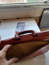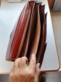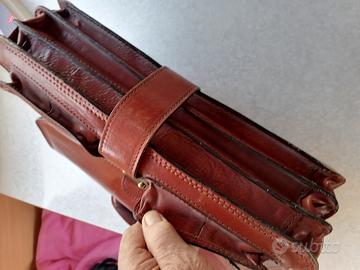 Borsa in cuoio per rappresentanza o docente, munita di tre scomparti molto capaci più altri per blocco notis e varie cose. Con porta ombrello e cinghia tracolla. Può contenere comodamente un portatile da 42cm. Prodotto artigianale italiano fatto interamente a mano. Se interessati 3398367149 solo whatsapp Albino.