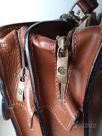 Borsa/ cartella in cuoio ideale per lavoro o scuola con manico e porta ombrello annessa anche la tracolla