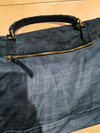 Borsa /cartella in jeans e vera pelle,in ottimo stato,con tracolla in stoffa regolabile e removibile,taschino interno con chiusura e tasca posteriore con cerniera.Molto capiente.