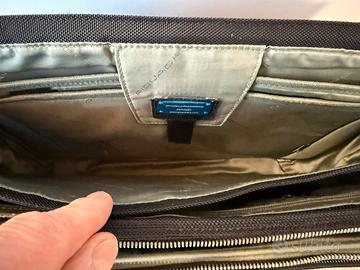 Originale PiQuadro modello Link nera con finiture in pelle e dettagli in metallo massiccio - Ottimo stato. Dimensioni: 46 x 17 x 30 cm; 2,21 kg. La valigetta ha due scomparti principali più una tasca protetta per notebook 15” ed una tasca documenti A4 con zip. Due scomparti frontali con zip (slot per smartphone, porta carte di credito, porta penne, carte di credito e portachiavi staccabile). Tasche laterali con zip per accessori. Tasca posteriore con zip per documenti da tenere a portata di mano. Tracolla in microfibra regolabile e staccabile. Manico in morbida pelle. Fascia per aggancio a trolley.