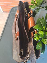 Borsa cartella Lois Vitton, non originsle, pelle marrone con logo, chiusura con gancio in metallo , tracolle removibile.