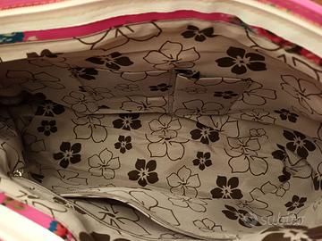 Cerchi un accessorio unico che unisca lo stile retrò alla praticità moderna? Vendo graziosa borsa a cartella modello college, perfetta per la scuola, il lavoro o il tempo libero. Caratterizzata da un vivace colore rosa intenso con finitura lucida, è decorata con un romantico tema floreale vintage. Il materiale plastico la rende completamente impermeabile, ideale per proteggere i tuoi oggetti anche nelle giornate di pioggia. -Design e Materiali: Effetto lucido con dettagli curati e stile intramontabile. -Comodità: Tracolla beige regolabile per una vestibilità perfetta. -Organizzazione Esterna: 2 Tasche frontali con pratico aggancio magnetico (nascosto sotto le fibbie). 1 Tasca posteriore di sicurezza con chiusura a zip. 2 Tasche laterali esterne per piccoli oggetti. -Interno Capiente: Chiusura principale a zip, fodera in tessuto con trama floreale stilizzata, taschina interna con zip e doppio scomparto portaoggetti. Dimensioni: Larghezza: 36 cm Altezza: 26 cm Profondità: 10 cm Condizioni: come nuova, mai usata Disponible la consegna a mano in zona.