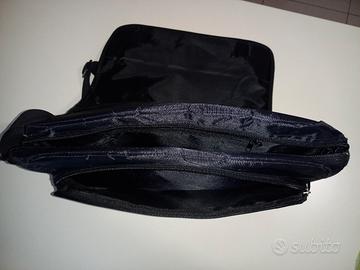 borsa/cartella uomo in tela lucida color blu. altezza 30cm, larghezza 35cm. nessun difetto.