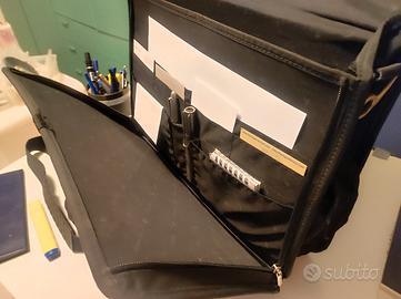 la cartella in tessuto in nylon formato da due scompartimenti tutto il Mac confort grazie alle piccole tasche organizer , usata main ottime condizioni , ha la tracolla