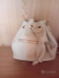 Borsa secchiello, tracolla con fibia e catenella dorata, interno foderato con taschino, 10 euro