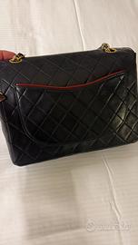 chanel borsa originale 25 cm in pelle di agnello nera con profilo bordeau ( come fodera interna in pelle )
