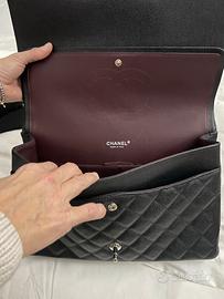 in pelle di vitello nera e metallo color argento,dimensioni cm 34x24x10.5 acquistata presso la Boutique Chanel di Milano,completa di scatola garanzia card e scontrino di acquisto.