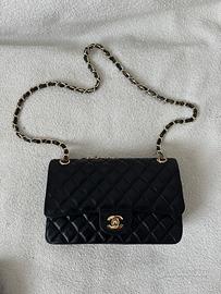 Borsa Chanel Timeless vintage. Presenta i segni del tempo infatti la pelle della tracolla purtroppo è usurata come si può vedere dalle foto. Appena acquistata era perfetta.. ma con il passare degli anni soprattutto la fettuccia interna della catena della tracolla si rovina. Io la utilizzavo comunque così.. ma eventualmente è possibile far mettere la fettuccia in pelle nera nuova da un pellettiere.