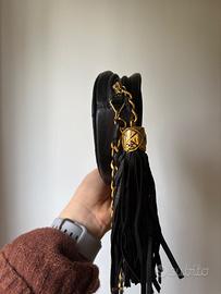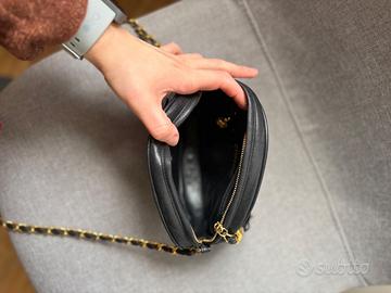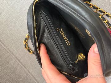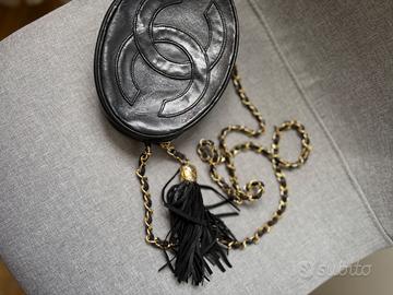 Vendo Borsa Ovale vintage Chanel in pelle di agnello nera Logo Chanel in rilievo sul davanti.