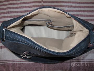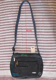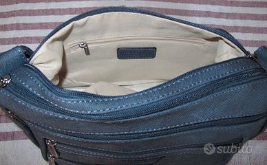 Borsa Charro a tracolla, sportiva, in tessuto canvas loggato color blu con qualche accenno di grigio, ricorda il denim o un navy chiaro. Molto capiente, misura 30 x 23 x 10. Due comparti principali con zip, e all'interno altre comode tasche. Altri 3 comparti con zip sul davanti, e 1 sul retro. Cinghia fissa per essere portata a spalla regolabile in lunghezza. Materiali: cotone e poliuretano. È nuova con etichetta, quindi ottima idea regalo. Per info o ulteriori foto, che non ho spazio per caricare, non esitate a scrivermi. Ritiro a mano o spedizione con TuttoSubito.