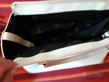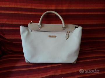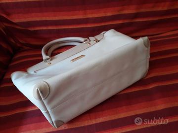 In perfette condizioni vendo della Arcier 38x26x16p borsa elegante in pelle chiara ruvida e in alcune parti liscia di color beige, manici corti in pelle, internamente foderata con tasca interna ed esterna, zip.