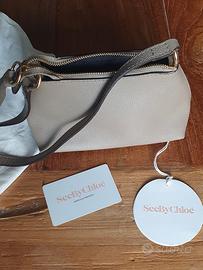 Borsa Joan mini di Chloe' nuova, mai utlizzata, ancora con confezione originale, dotata dei cartellini originali e della dust bag, colore Motty Grey (un grigio tortora). La borsa e' dotata di una tracolla fissa per portarla a spalla e di un manico amovibile per portarla a mano. Realizzata in pelle a grana con tasca anteriore con patta in suede, dotata di charm con placca logata e chiave in metallo (prezzo originale €414).