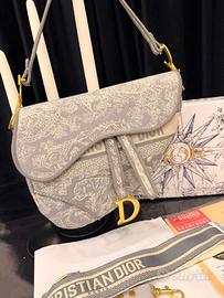 Borsa Christian Dior modello Saddle. - Fantasia Toile de Jouy. - Dettaglio charm D dorato. - Tracolla Christian Dior regolabile e removibile.