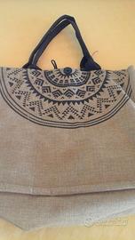 Vendo borsa cinese con modelli geometrici ,nuova,dimensioni 22 cm. x 30 cm.Materiale sintetico che imita il sughero.Regalo con essa borsa di iuta stampata (vedi foto).Prezzo 10 euro.