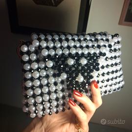 una borsa clatch fata in perle. un lavoro manuale di precisione. intrecciate con il filo resistente. capiente e pratica.