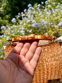 Stupenda borsa con chiusura clic clac madreperlata dalle tonalità calde fatta interamente con perle color champagne